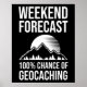 Prévision de fin de semaine - 100% Chance de géocaching. Cet accessoire de géocaching amusant est idéal pour les hommes, les femmes, les filles, les garçons, les ados et les enfants qui aiment aller randonnée en plein air et aller à la chasse au trésor pour un geocache caché. Si votre passe-temps est de faire de la randonnée dans les bois et la forêt et d'utiliser un gps & map pour vous aider à trouver des trésors cachés, ou vous aimez créer et cacher des géocaches vous-même, alors ce design est pour vous!