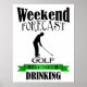 Ceci est une affiche qui convient à un golfeur. Il a une silhouette d'un golfeur et déclare "Weekend prévision Golf avec une chance de boire. Cela aurait l'air génial dans votre maison, votre dortoir ou votre bureau. Ajoutez du texte pour le personnaliser.