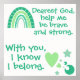 Monogrammé pour vous d'insérer votre propre prière si vous le choisissez, poster carré. Ce joli thème boho avec un arc-en-ciel vert et une galaxie, et le texte vert sur un arrière - plan blanc, dit, Cher Dieu, m'aide à être courageux et fort. Avec toi, je sais que j'appartiens.