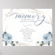 Fleurs bleues poussiéreuses pour s'adapter à votre thème de mariage, Panneau de prière de mariage en souvenir de la mémoire aimante. Utilisez cette courte prière ou remplacez-la par la vôtre, ou vous pouvez même lister les noms de vos proches qui ne sont plus parmi nous. Des roses aquarelles, des feuilles et des baies dans un bleu poussiéreux chic moderne entourent un cadre doré de style terrarium géométrique avec de la verdure de sauge. Personnalisez le texte, le style de police, la couleur et la taille. Œuvre d'art originale créée pour le BarefootBride™ par © WhimsicalArtwork™ - Cela fait partie d'une suite complète de papeterie de mariage avec des invitations de mariage, de baby shower et d'autres événements assorties.