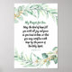 Ce design élégant comporte une typographie de style calligraphie avec le message : "Ma prière pour vous : Que le Dieu de l'espérance vous remplisse de joie et de paix comme vous faites confiance en lui afin que vous puissiez déborder par la puissance de l'Esprit Saint. Romains 15:13." Le design est entièrement modifiable et inclut l'accent de laurier aquarelle sur les bords supérieur et inférieur.