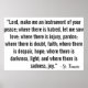 "Seigneur, fais de moi un instrument de ta paix; là où il y a la haine, fais-moi semer l'amour; là où il y a la blessure, pardonne; là où il y a le doute, la foi; là où il y a le désespoir, l'espoir; là où il y a l'obscurité, la lumière; et là il y a la tristesse, la joie." -Saint François