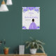 Ce panneau de bienvenue pour fête d'anniversaire présente des fleurs violettes florales faussement scintillantes et une belle princesse à la peau foncée vêtue d'une robe élégante. C'est parfait pour une fête d'anniversaire.