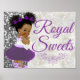 Affiche de l'événement Royal Sweets Signal avec shimmer argenté et élégante carnation blanche arrière - plan floral Parfait pour Royal Princess Baby shower Thème ou Royal Princess Premier anniversaire Partie Texte personnalisable Miss Sassy Partie Designs