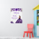 Ce panneau d'accueil Quinceanera présente une belle princesse dans une robe de bal violet foncé aux arrangements floraux. C'est parfait pour une fête d'anniversaire de Quinceanera.