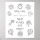 Printable Scribble Doodles Black Welcome to New Year Party. Available digitally and printed. Informal and fun, with playful quirky sketchy lines and doodle illustrations. Easily personalise to your own details in black and white.