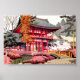Temple rouge japonais cool de printemps, rose, cerise, oriental