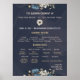 Guidez vos invités avec grâce et beauté à l'aide de cette enseigne de programme de cérémonie des Mariages Fleurs sauvages de la Marine, conçue pour correspondre à votre suite de mariages floraux romantiques. Placé sur un arrière - plan marin profond avec de l'ivoire doux et des fleurs sauvages bleus poussiéreux, ce tableau élégant ajoute une touche raffinée à votre espace de cérémonie. Avec les noms du couple, la date, le lieu, un plan détaillé de la cérémonie et la gamme complète de la fête de mariage, ce tableau aide les invités à suivre et à se sentir connecté à votre journée spéciale. La disposition propre et moderne associée à d'élégantes polices serif et manuscrites crée une esthétique intemporelle et chaleureuse. Parfait pour encadrer à l'entrée de votre cérémonie ou afficher sur un chevalet, ce panneau élimine le besoin de programmes imprimés tout en fournissant tous les détails importants dans le style. Customisez facilement le texte pour votre propre flux de cérémonie de mariage, les noms et les rôles. Caractéristiques clés : Options de taille pour convenir à votre espace de cérémonie (petit à grand poster) Coordonnées parfaitement avec suite de mariage fleur sauvage marine Personnalisable avec les noms de couple, date, lieu, détails de cérémonie et fête de mariage Combinaison élégante de polices sur un arrière - plan romantique bleu marine imprimé sur matériel de signalisation robuste, prêt à encadrer ou à monter Utilisations suggérées : Espace de bienvenue ou entrée couloir Cadre pour tablette ou chette affichage de l'image Signal digne d'une photo qui sert de support de conservation Éco-conscient alternative aux cartes de programme individuelles #programme de mariage #marionnettiste #décoration de mariage #floralsignage #cérémonie