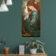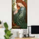 Proserpine de Dante Gabriel Rossetti, huile sur toile 1882, Peinture pré-Raphaélite de la femme en robe bleue avec longs cheveux auburn, avec inscription poème peinte à la main.