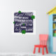 Proverbe : "Un bon ami est comme un trèfle à quatre feuilles difficile à trouver et chanceux à avoir" Texte blanc sur fond bleu tableau d’école, entouré de trèfles à quatre feuilles verts.