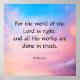 Car la parole du Seigneur est juste; et toutes ses oeuvres sont faites dans la vérité. Psaume 33:4
