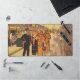 Affiche publicitaire vintage pour le métro londonien, montrant les passagers sur une plate-forme de métro; un côté a des gens habillés de façon contemporaine à l'affiche et l'autre a des gens de l'époque de l'ouverture du métro en 1890. vers 1924