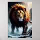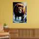 Puissant Lion au-dessus de l'eau Ce produit est une étonnante impression de toile d'un lion puissant marchant au-dessus de l'eau. L'image capture la beauté majestueuse et la force du lion, ainsi que le mouvement dynamique de l'eau. Ce produit est parfait pour toute personne qui aime les tigres, la faune ou la nature en général.