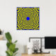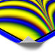Illusion optique : Entre autres, le design pointu et les couleurs bleu et jaune qui s'échangent donnent à cette image un puissant mouvement pulsateur.
