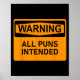 Affiche Puns Are Intended Funny Warning Sign Sarcastic Hum