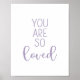 You Are So Loved, une citation de typographie minimaliste en violet, parfaite pour tout décor de pépinière, penderies de chambre pour enfants ou petite pièce de jeux murale pour enfants.