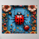 Des coccinelles colorées qui sont assis sur une surface bleue avec des fleurs