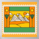Poster de timbre des pyramides d'Egypte en vert, jaune et marron