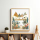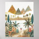 Transformez votre espace avec cette affiche d'art captivante représentant un paysage désertique. La scène évocatrice présente d'anciennes pyramides, une rivière sinueuse, des palmiers luxuriants et deux personnages se promenant le long d'un chemin. Cela invite les spectateurs à un voyage d'imagination. Un mélange de tons chauds et froids crée une composition visuellement attrayante.