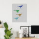 quatre oiseaux animaux pépinière imprimer vert, bleu, brun, violet