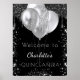 Un poster pour une fille et une quinceañera glamorale, 15e anniversaire. A black background decorated with faux glitter drips, paint dripping look, faux silver balloons. Personalize and add a name and age. Back: no design