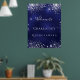 Une affiche de bienvenue pour une Quinceañera, 15e anniversaire, girly et glamour. Un arrière - plan bleu marine avec d'élégantes parties scintillant en faux argent brille. La couleur bleue est inégale. Personnalisez et ajoutez un nom. Lettres blanches. Retour : aucune conception
