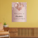 Une affiche de bienvenue pour une fête d'anniversaire girly et glamour Quinceañera (ou tout âge). Un arrière - plan rose à l'aspect faux métallique et à l'aspect faux parties scintillant décoré de gouttes, de la peinture goutte à goutte, des ballons. Personnalisez et ajoutez un nom et un âge. Retour : aucune conception