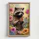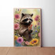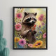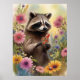 Affiche Raccoon Whimsical et art naturel Fleur sauvage