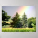 A fantastic print of a beautiful rainbow across a field going behind evergreens. Where obviously the 'pot of gold' resides :)