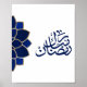 Affiche "Ramadan Moubarak" en élégante calligraphie arabe bleue. Conception captivante pour le mois saint, transmettant des salutations et des bénédictions chaleureuses. Accrochez-le à l'esprit du Ramadan, créant une atmosphère sereine et inspirante. Célébrez la beauté du Ramadan avec ce poster plein de coeur, nous rappelant ses bénédictions et sa signification.