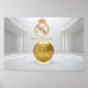 OEuvre murale : Un design minimaliste avec un centre de football doré, entouré d'une crête moderne du Real Madrid sur un arrière - plan blanc et épuré.