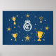 OEuvre murale : Un design qui reflète l'histoire du Real Madrid en mettant en vedette de petites icônes représentant les principaux championnats. Les trophées d'or et les étoiles sont répartis sur un arrière - plan bleu sophistiqué, avec un logo subtilement centré