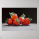 A vibrant fine art print featuring a realistic still life of ripe strawberries, originally painted in oil on canvas. The rich reds, detailed textures, and dramatic lighting bring warmth and depth to any space. Whether you're decorating a kitchen, a dining room, or a cozy nook, this artwork adds a timeless, handcrafted touch. Based on an original painting by artist Lukian.