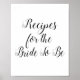 Affiche Recettes pour l'épouse à être signe Fête des marié