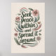 Offrez-vous une atmosphère sereine avec ce design boho enchanteur qui présente la citation inspirante Recherchez la paix à l'intérieur et la diffuser autour. Décorées dans des tons doux et terreux de vert rose sage poussiéreux et de beige chaleureux, les illustrations délicates de la nature, y compris les plumes fleurs sauvages et les mandalas, créent une ambiance tranquille. Des vagues douces et des motifs tourbillonnants symbolisent l'harmonie qui vous invite à embrasser la paix intérieure tout en partageant sa beauté avec le monde