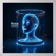 Un écran holographique futuriste 3D projette un visage humain avec un code et un circuit complexes, symbolisant la reconnaissance faciale alimentée par l'IA. Placés contre un arrière - plan bleu foncé éclairé par un néon, les accents brillants mettent en valeur la précision et l’analyse en temps réel de la technologie, encadrés par une bordure argentée élégante et une typographie audacieuse.