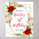 This beautiful and elegant birthday welcome sign features watercolor red, pink and orange roses with foliage. The text combines handwritten script and serif fonts for a stylish and modern look. This is perfect for a summer rustic birthday.