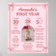 Celebrate your baby girl’s first year with our Red and Pink Bow Cake First Year Milestone Photo Poster. Featuring a sweet blend of red and pink tones, dainty bow accents, and an adorable cake illustration, this poster beautifully showcases your little one’s favorite things, first words, and special milestones. Perfect for displaying at her birthday party, photo area, or nursery, it adds a charming and personalized touch to your red and pink bow birthday theme while creating a keepsake to treasure for years to come.