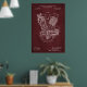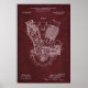 Affiche de brevet pour moteur à combustion interne en rouge. Correspondance d'articles dans notre magasin.
