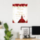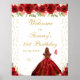 Ce panneau de bienvenue élégant et glamour pour la fête d'anniversaire présente une belle princesse aux cheveux roux bruns et à la peau claire dans une robe de boule rouge. Le texte combine écriture manuscrite et polices sans serif modernes pour un look élégant et sophistiqué. Les compositions florales, les papillons et les confettis d'or créent un mélange parfait de rustique et de chic. Graphiques par www.etsy.com/uk/shop/SunflowerDayLove