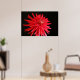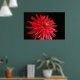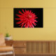 Une affiche d'un magnifique dahlia de cactus rouge vif, à pétales, sur un arrière - plan noir.