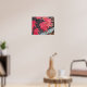 Decorate a living space during the autumn season with this poster print featuring a photographic image of colorful, red Japanese Maple leaves contrasting against a grey, wooden building. A stunning, botanical image! Select your poster size and other options as desired.