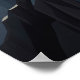 Peinture à l'huile Art Déco stylisée représentant une femme en costume bleu cérulean dans un moment de contemplation sur une crête de montagne, rendue avec une précision polie, sculpturale et un éclairage aérien spectaculaire dans une perspective en grand angle.