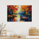 Cette peinture à l'huile richement texturée vous invitation dans une scène de rivière d'automne sereine, où des oranges enflammées, des jaunes radieux et des rouges profonds éclatent à travers les arbres en contraste frappant avec les bleus et les verts cool de l'eau. Les coups de pinceau épais donnent à l’oeuvre une présence tactile et tridimensionnelle, tandis que les reflets chatoyants dansent à travers la surface de la rivière dans des traits lumineux et cassés. Un bateau solitaire dérive paisiblement au milieu de la végétation, évoquant un calme sentiment de solitude et de connexion à la beauté sauvage de la nature. Parfait pour ajouter chaleur et tranquillité à tout espace.