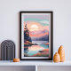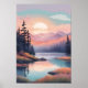 Un soleil éclatant se lève sur des montagnes doucement rouillées, jetant une lumière chaude sur un lac forestier calme et des prairies herbeuses. Cette oeuvre d'art rêvée mêle ciel pastel vif aux teintes de forêt profonde, ce qui en fait un complément parfait à un espace apaisant et d'inspiration nature.