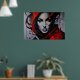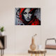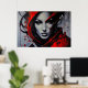 Une œuvre d'art saisissante ! Ce portrait de femme combine un réalisme facial avec des éclaboussures de peinture rouge et noire explosives. Des yeux pénétrants et des traits audacieux créent une atmosphère mystérieuse et élégante. Parfait pour la décoration haut de gamme, les studios et les amateurs d'art urbain et contemporain.