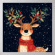 Un renne heureux orné de baies saintes et de métisses dans ses bois, dressé contre un ciel bleu magique rempli d'étoiles.