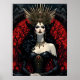 L'IA a produit l'art d'une belle reine gothique habillée en noir avec des détails rouges et or