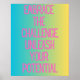 Présentez l'affiche colorée inspirante et captivante "Relevez le défi, Libérez votre potentiel"! Cette oeuvre d'art dynamique est un mélange parfait de mots inspirants et d'une explosion de couleurs pour élever vos esprits et vous motiver à atteindre de nouveaux sommets. Avec le message puissant "Relevez le défi, libérez votre potentiel", cette affiche sert de rappel constant pour comprendre les difficultés qui viennent à votre façon et exploiter vos capacités inexploitées. La palette colorée de rose, jaune et turquoise ajoute une ambiance animée et énergique, ce qui en fait un complément attirant à tous les espaces. Conçu pour susciter motivation et positivité, ce poster est idéal pour les environnements où l'inspiration est appréciée. Accrochez-le à votre maison, à votre bureau ou à votre bureau pour créer une atmosphère dynamique et stimulante qui favorise la croissance et le rendement personnels. La typographie et l'art littéraire sur cette affiche sont soigneusement arrangés pour créer un impact visuel frappant. Chaque mot apparaît avec couleur, accentuant le message et attirant l'attention sur le pouvoir d'accepter les défis et de réaliser votre plein potentiel. Laissez les couleurs vives et les mots de motivation sur cette affiche alimenter vos rêves et vous donner les moyens de surmonter les obstacles sur votre chemin vers le succès. Relevez le défi, libérez votre potentiel, et laissez ce chef-d'oeuvre coloré être une source constante d'encouragement et de positivité dans votre vie.