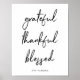 Cette affiche en noir et blanc, minimaliste et tendance, présente la citation inspirante "reconnaissante, reconnaissante, bénie" dans la typographie manuscrite moderne.